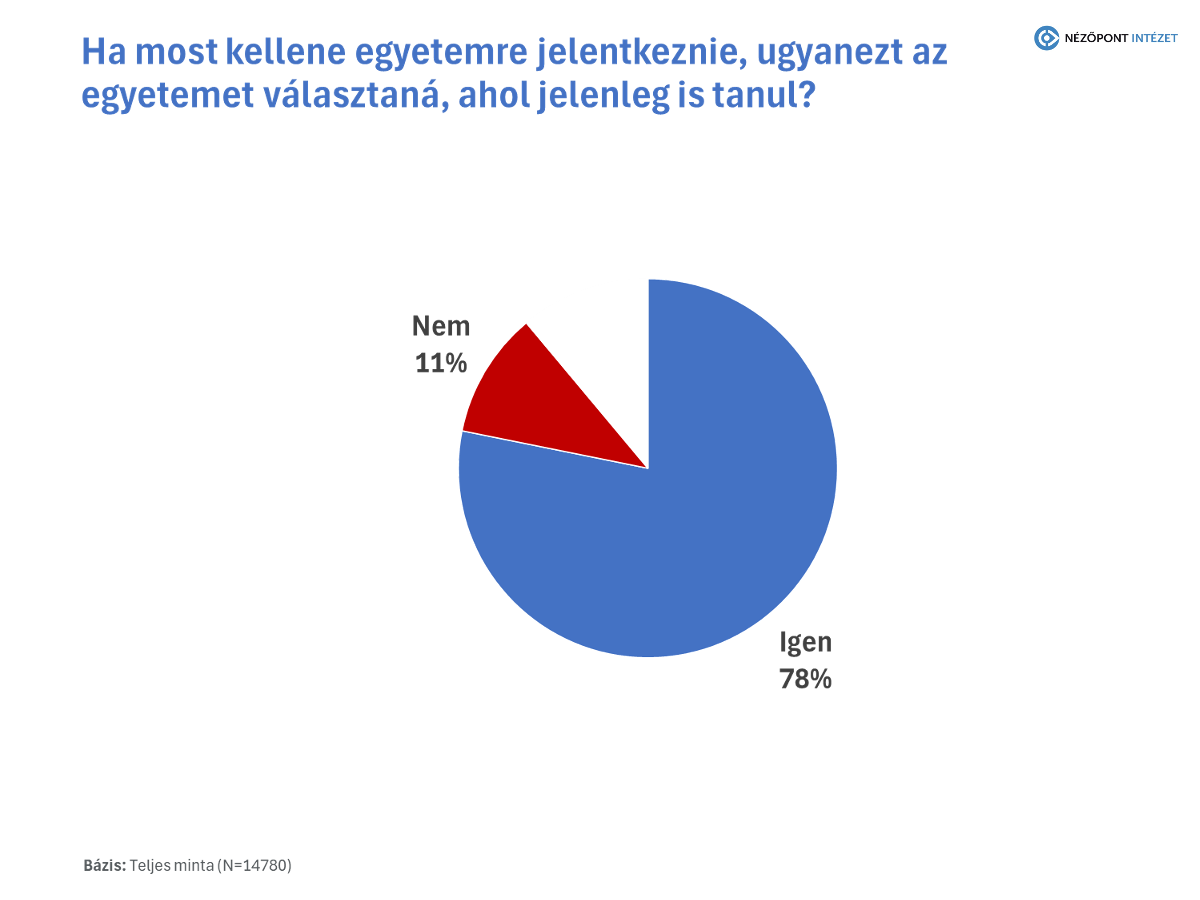 A Nézőpont Intézet Egyetemkutató Műhelye összesen 14 780 felsőoktatási hallgató megkérdezésével végzett átfogó kutatást az egyetemeken[1]. A minta reprezentatív a megújult egyetemek hallgatóira, nem, kor, munkarend és finanszírozási forma szerint. Az adatfelvétel 2025 júniusában készült.